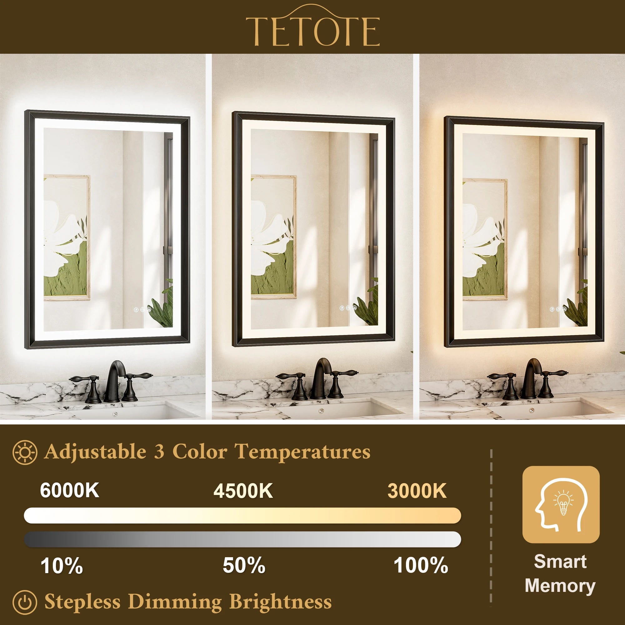 TETOTE Beveled Frame Frontlit & Backlit Mirror