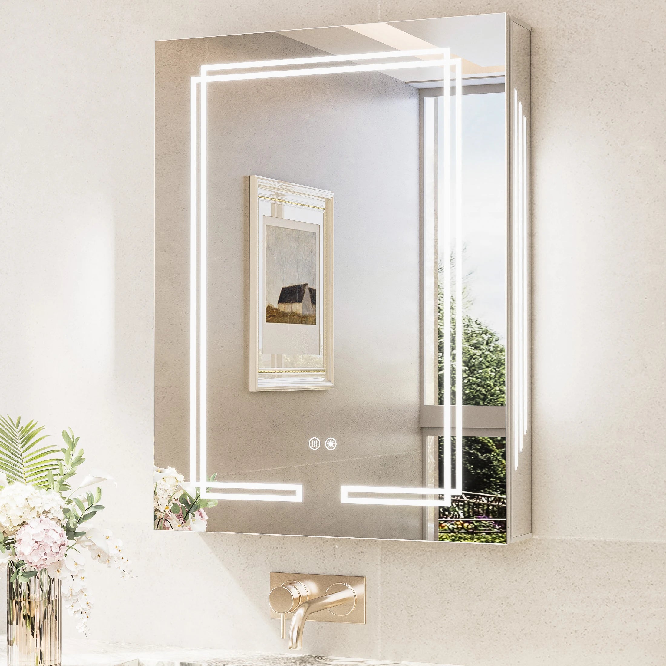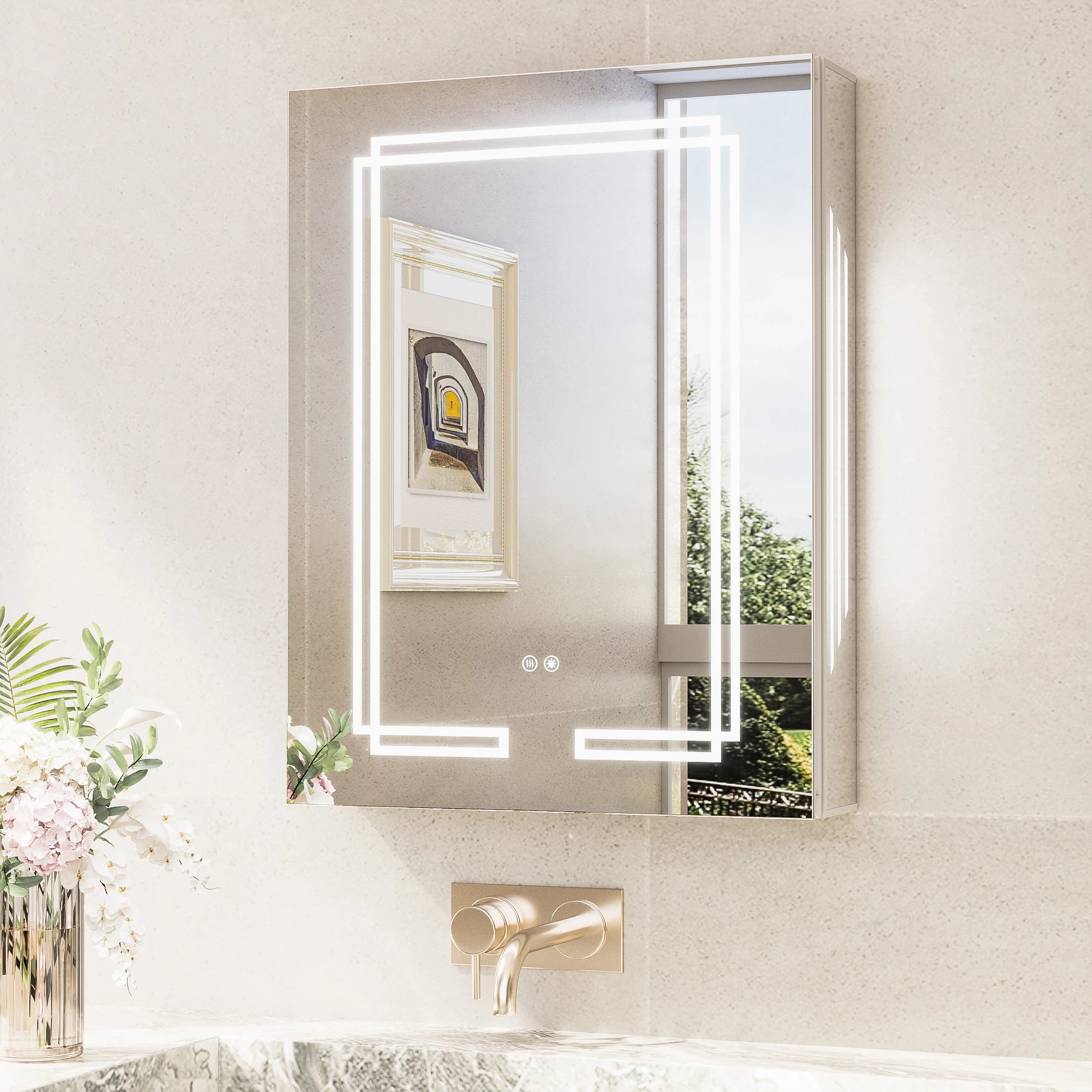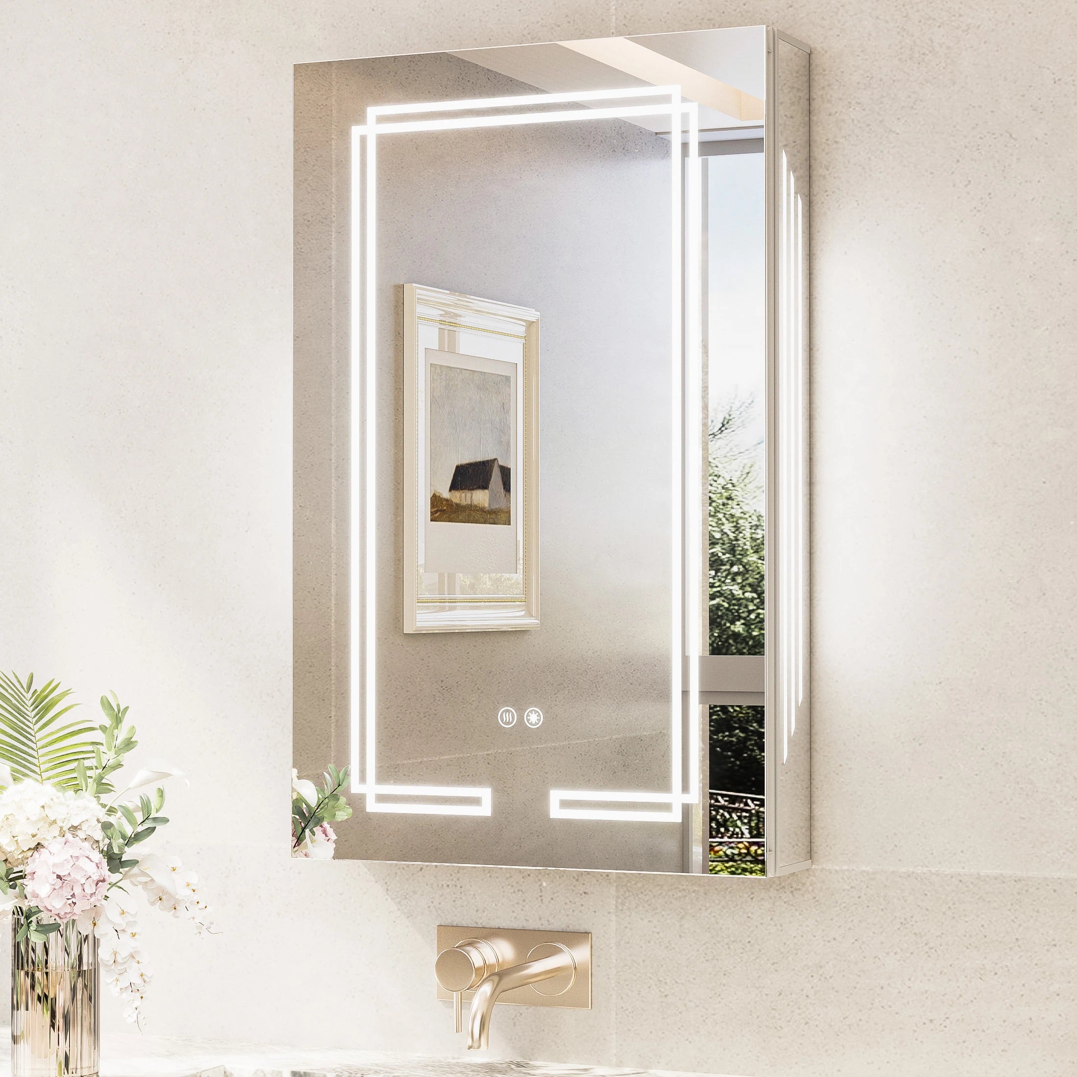 TETOTE Medicine Cabinet Bathroom LED Mirror 3 Colors Stepless Dimming Anti-Fog Memory Funtion Surface Wall Mounted Medicine Cabinets