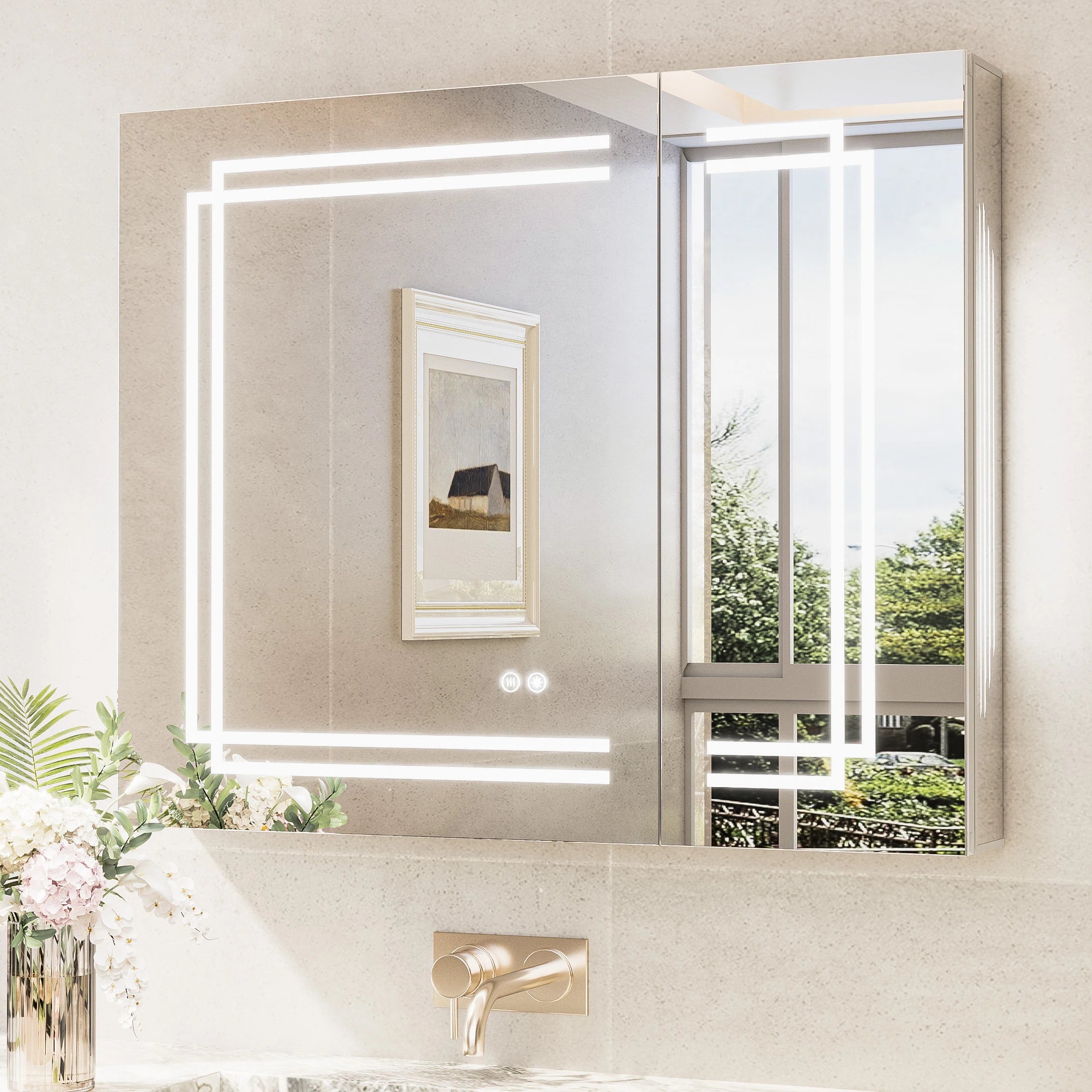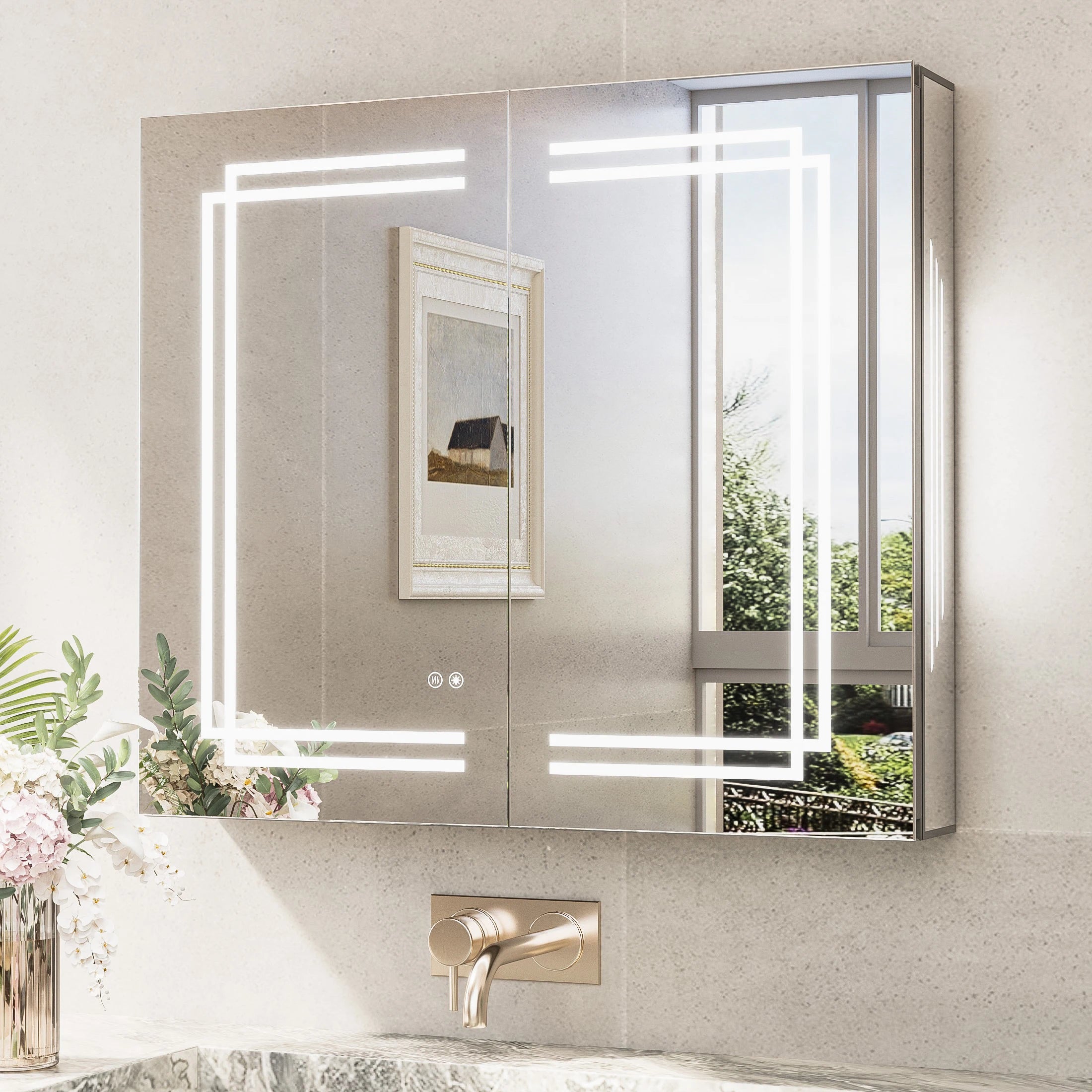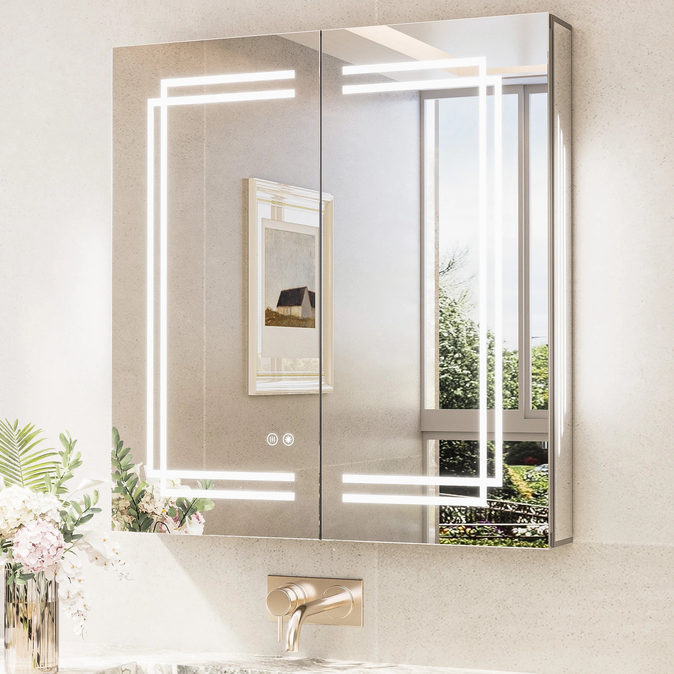 TETOTE Medicine Cabinet Bathroom LED Mirror 3 Colors Stepless Dimming Anti-Fog Memory Funtion Surface Wall Mounted Medicine Cabinets