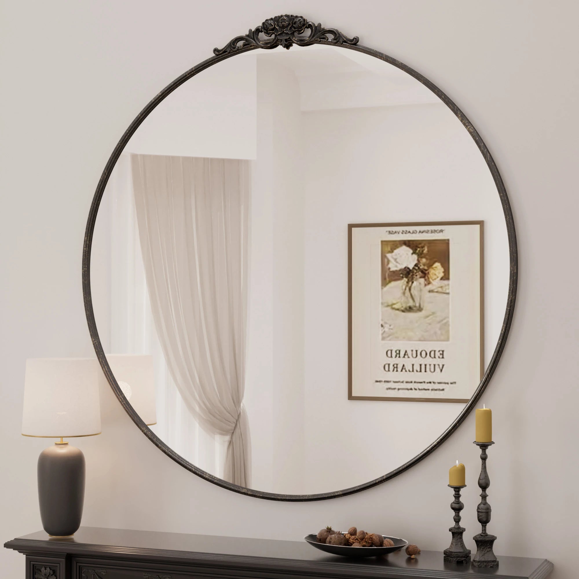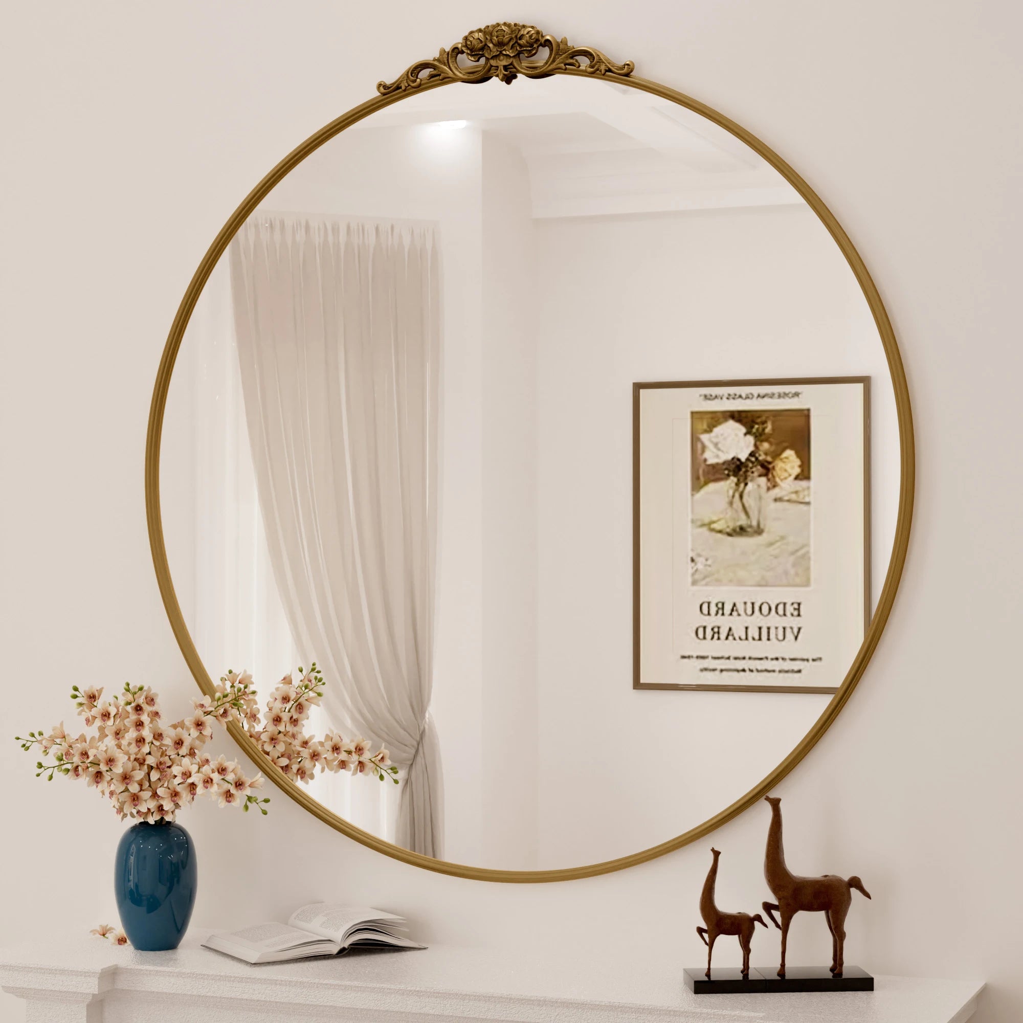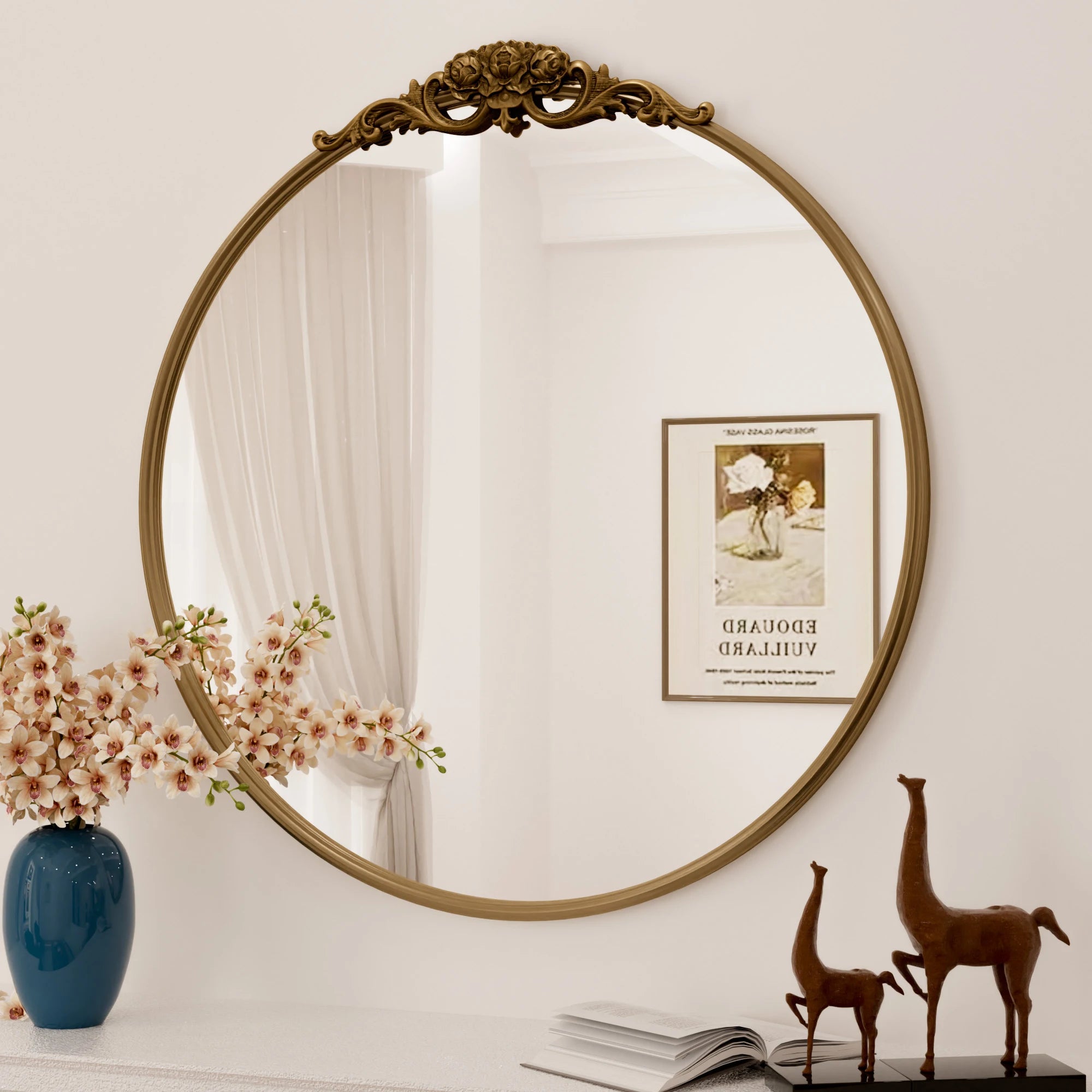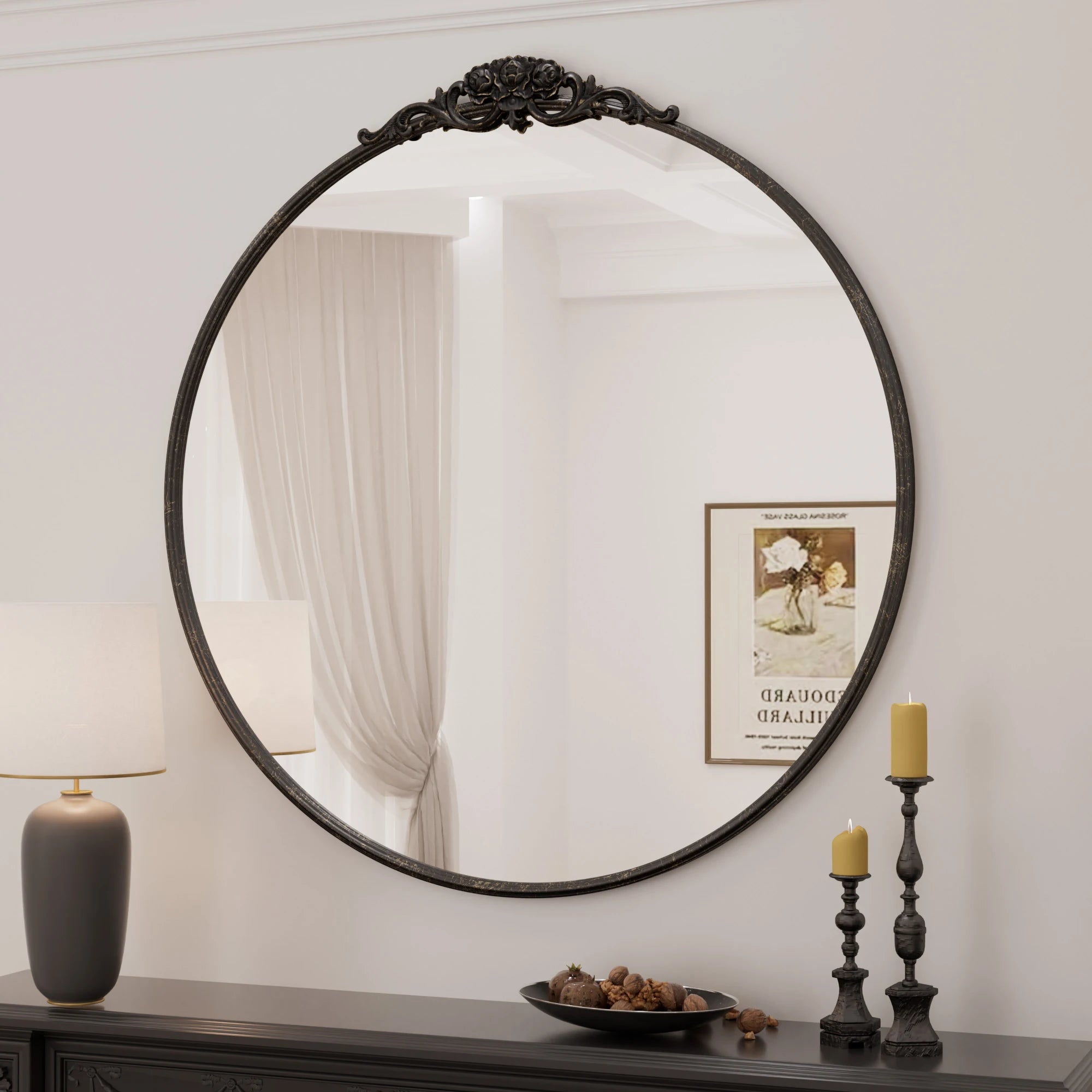 バロックの魅力にインスピレーションを得た時代を超越した円形デザインのラウンド アーチ ミラーは、どんな部屋もグレードアップする洗練された焦点を作り出します。