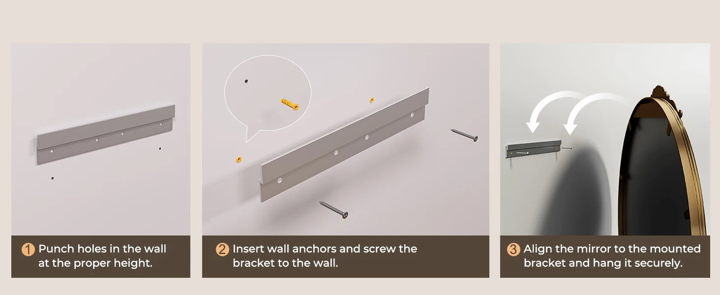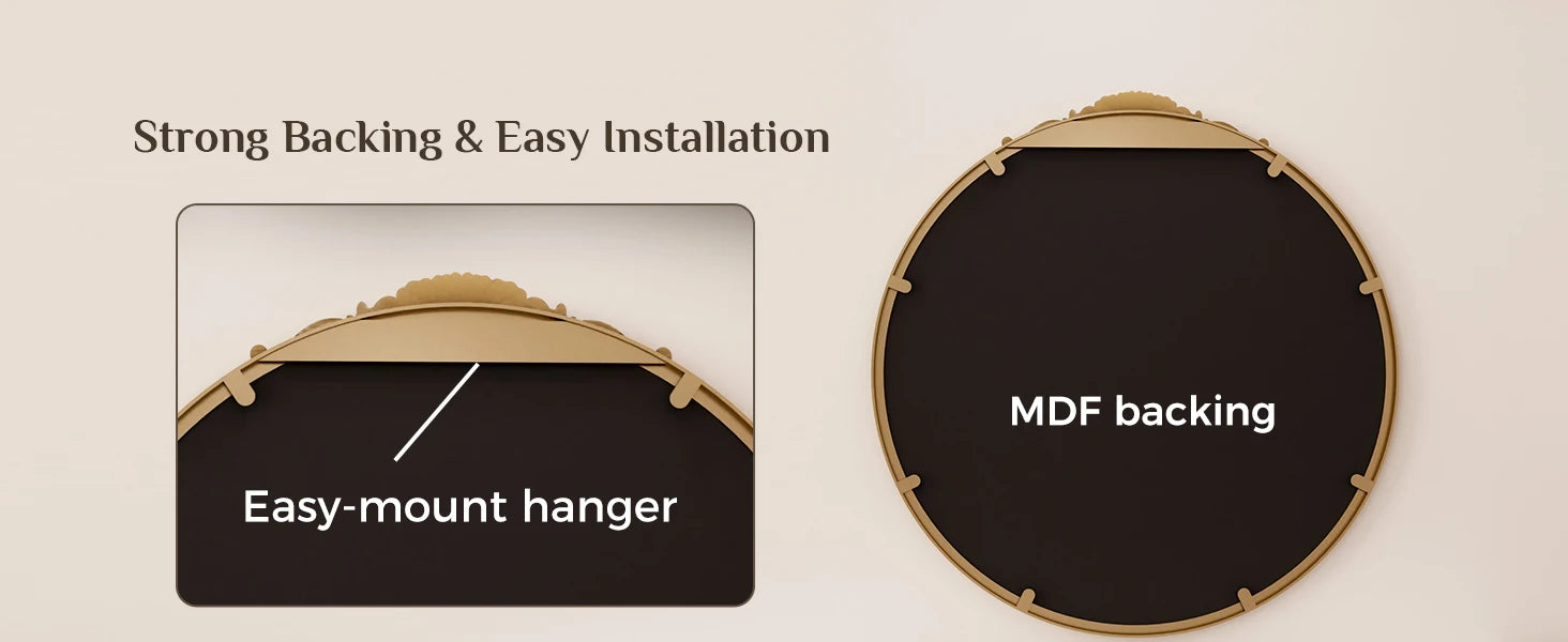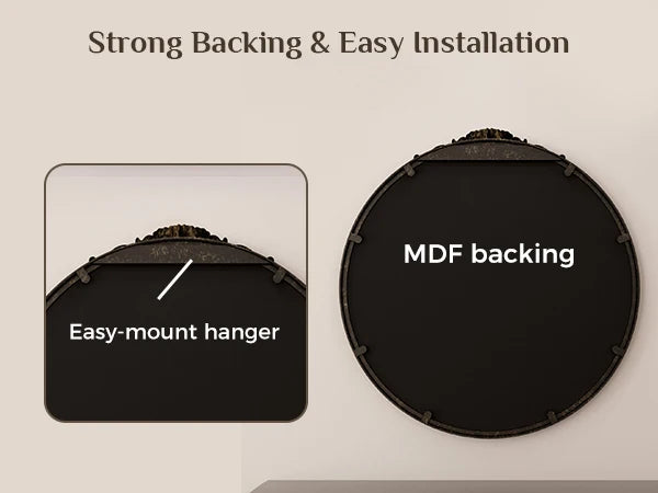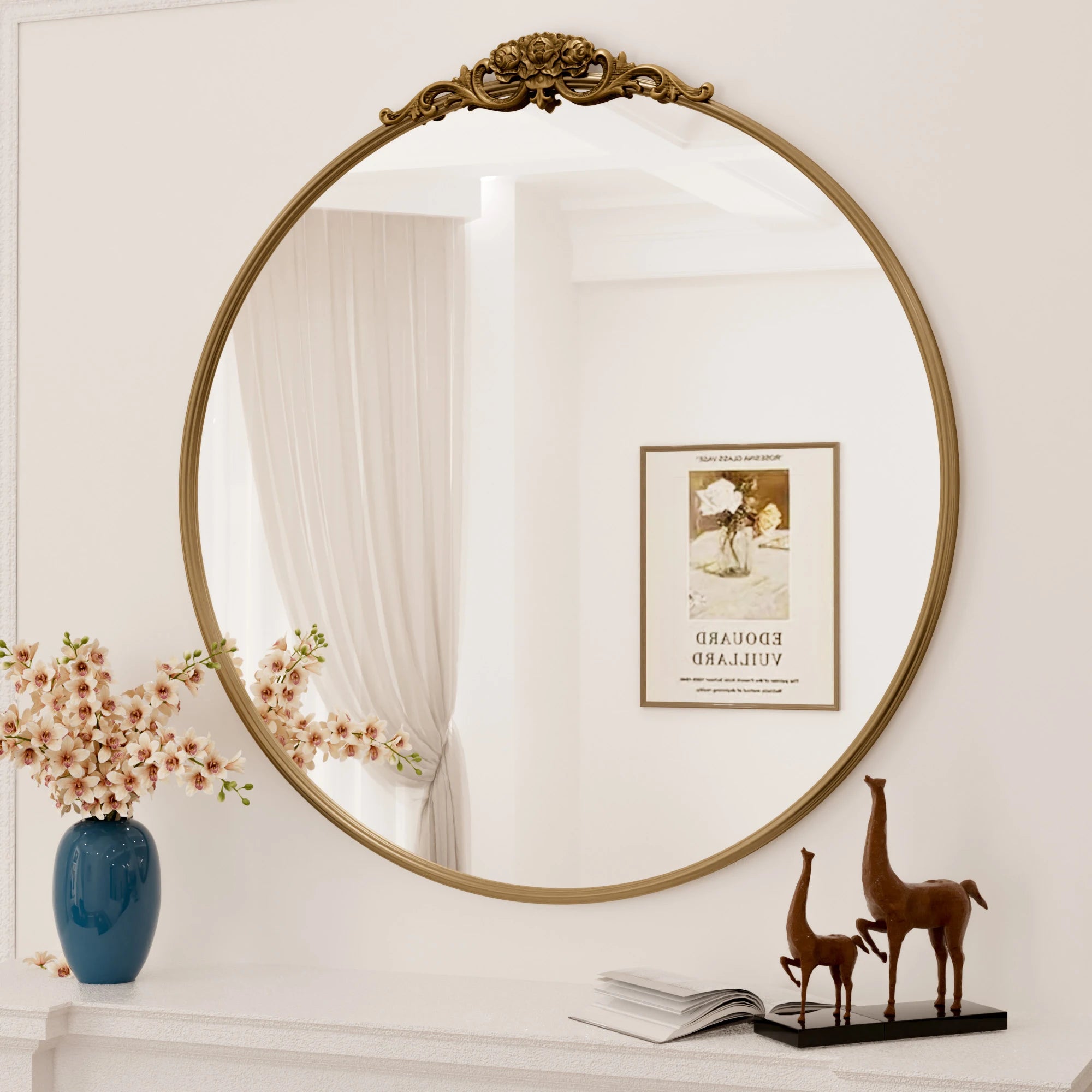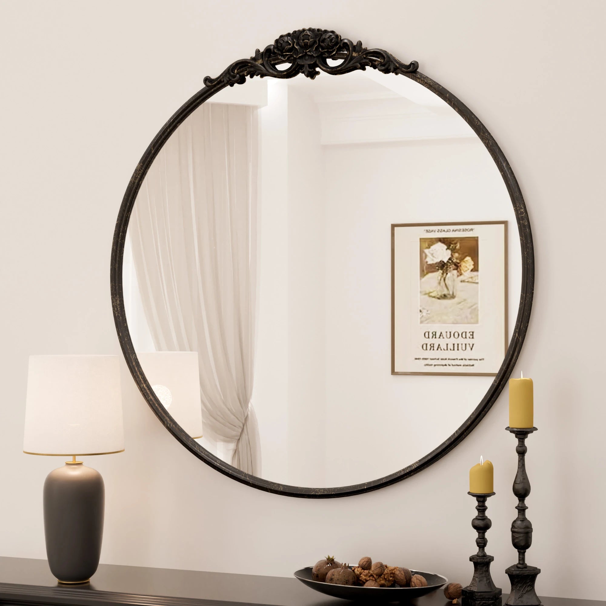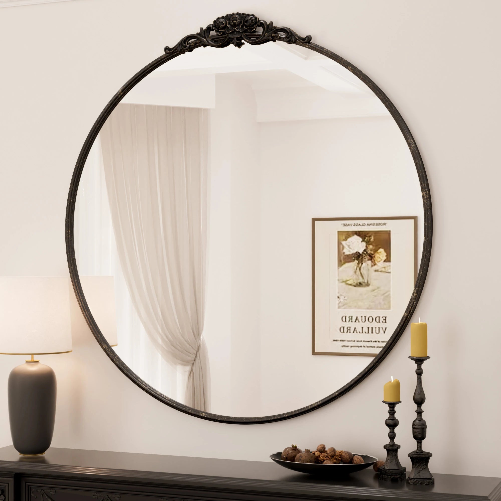 バロックの魅力にインスピレーションを得た時代を超越した円形デザインのラウンド アーチ ミラーは、どんな部屋もグレードアップする洗練された焦点を作り出します。