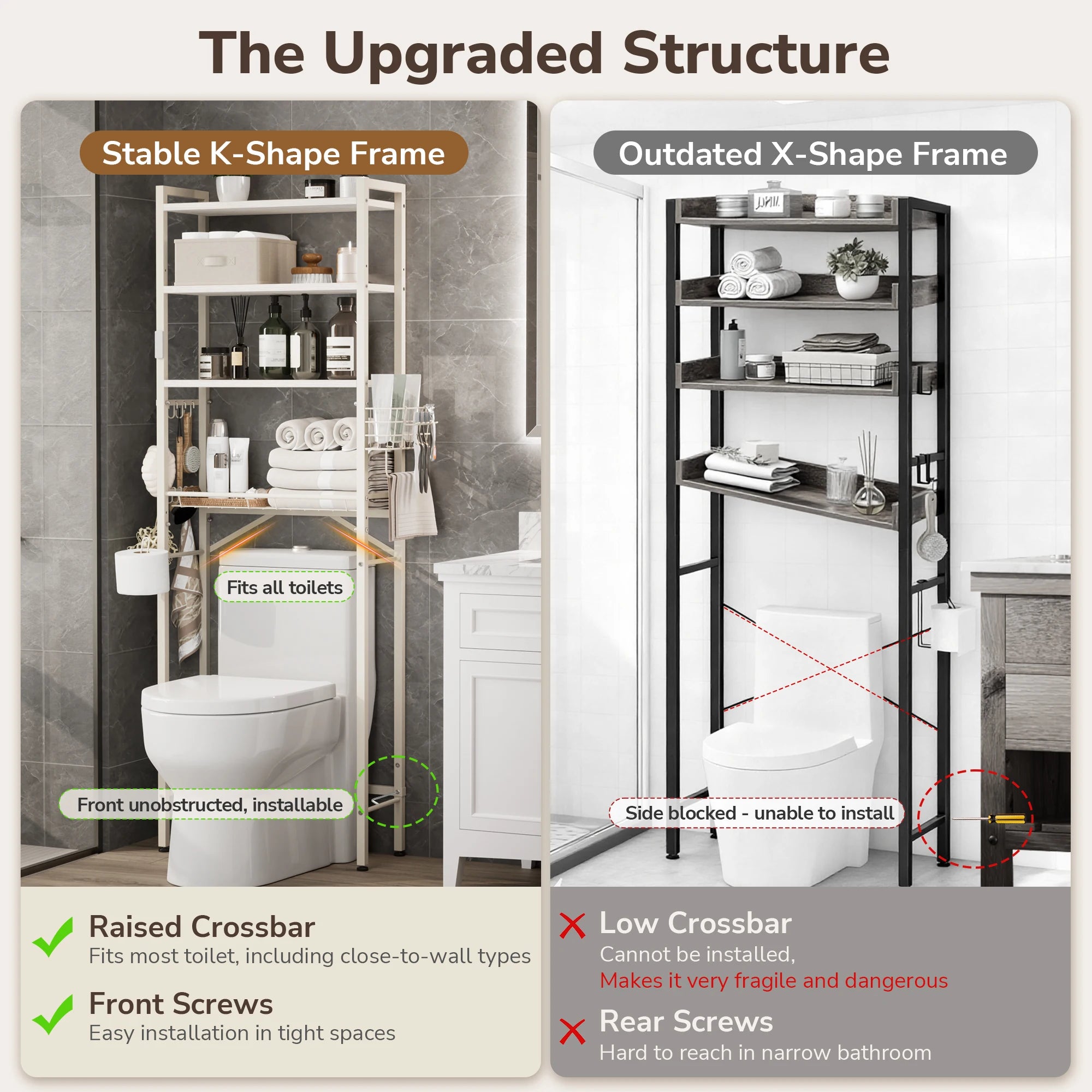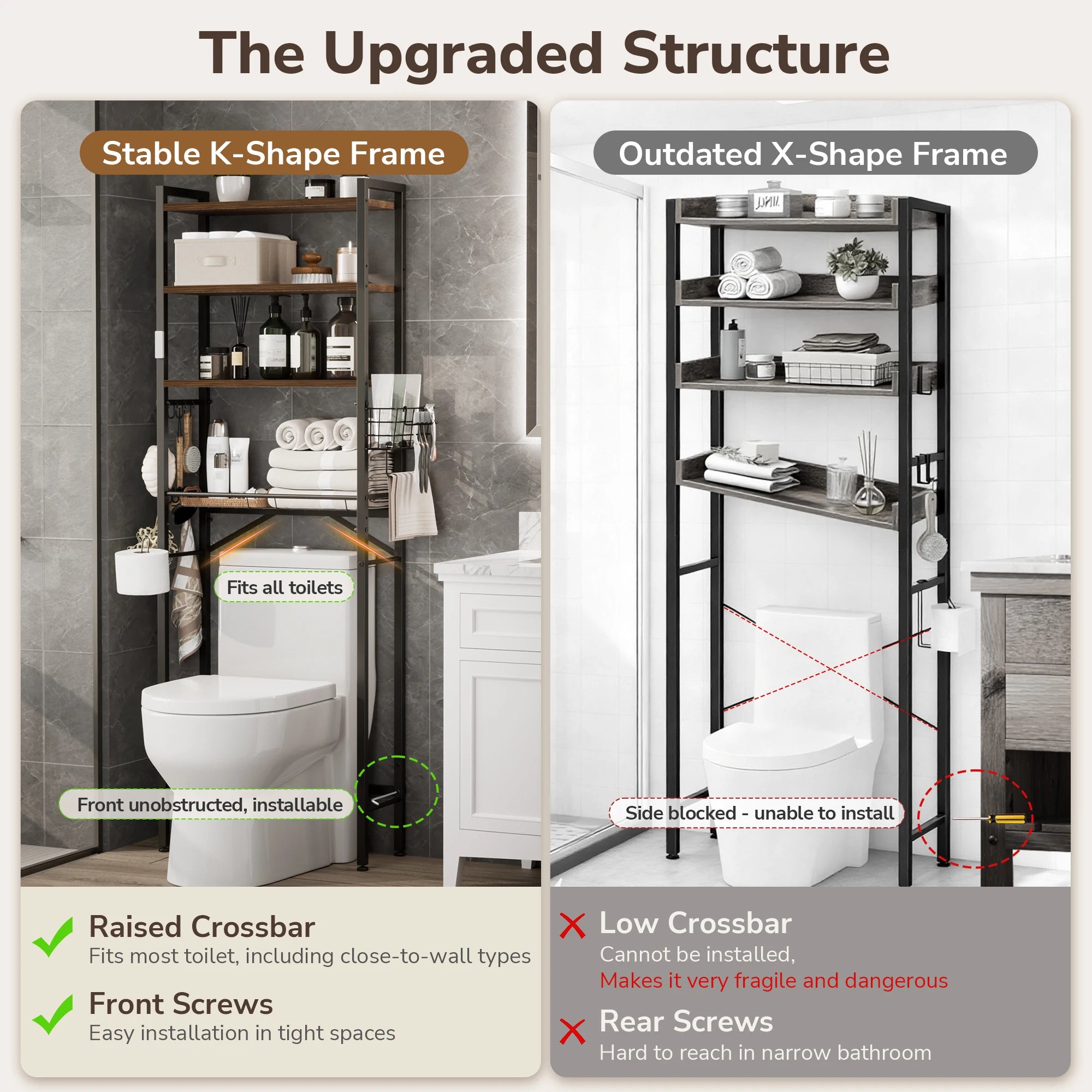 •  Enhanced Stability: No more wobbling. The upgraded K-shaped back support combined with adjustable footpads ensures the unit stands firm, while the slim profile (9.4" depth) fits tight spaces perfectly.