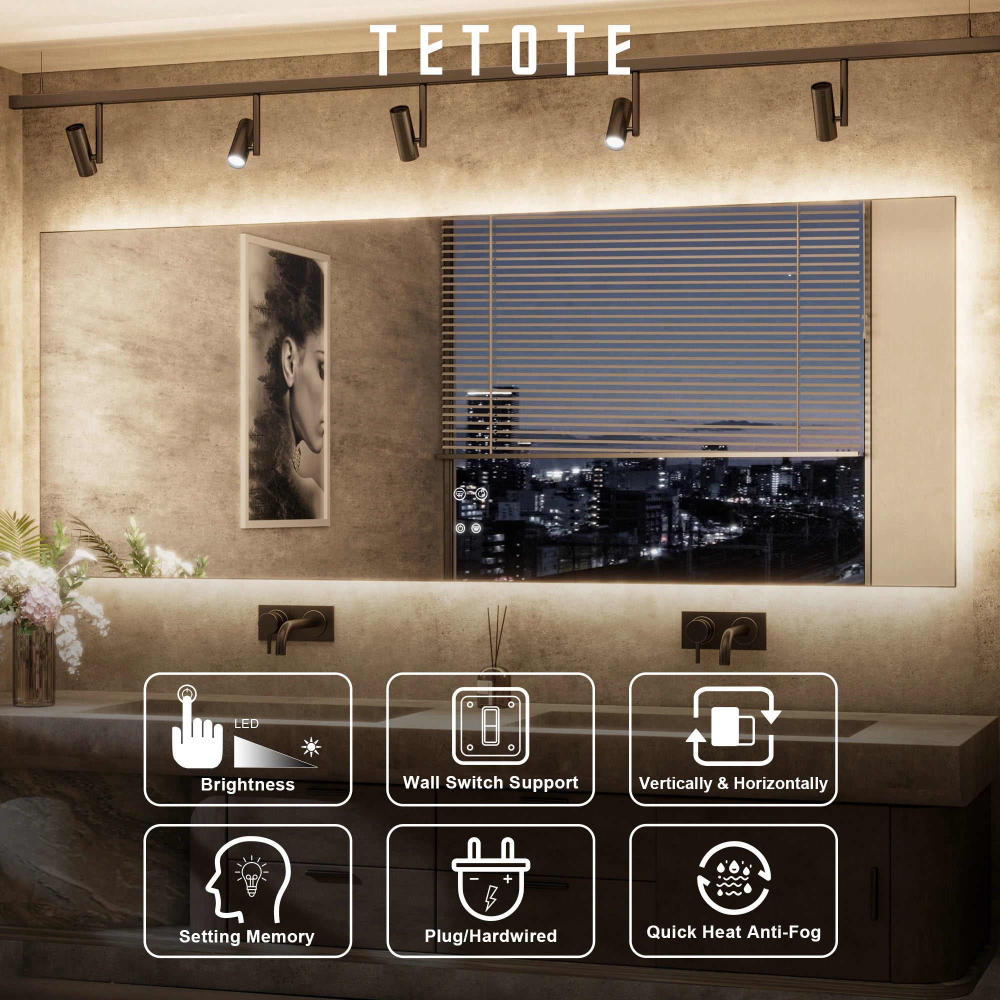 TETOTE Backlit LED Bathroom Mirror 3-Color Temped Glass