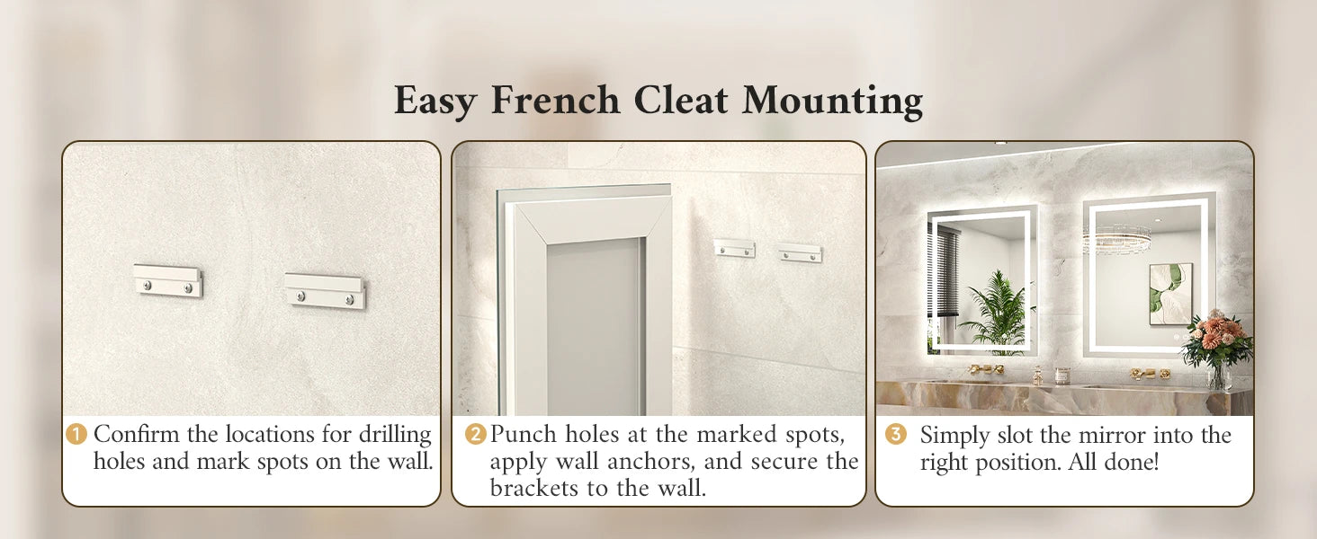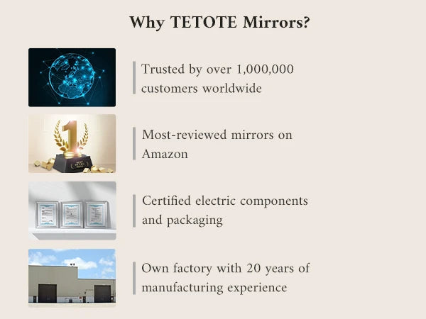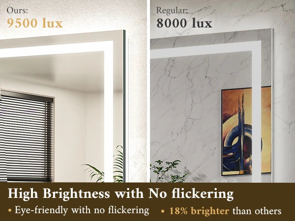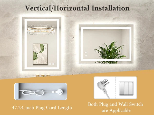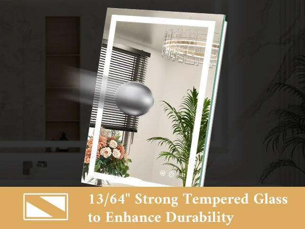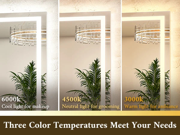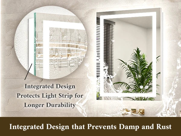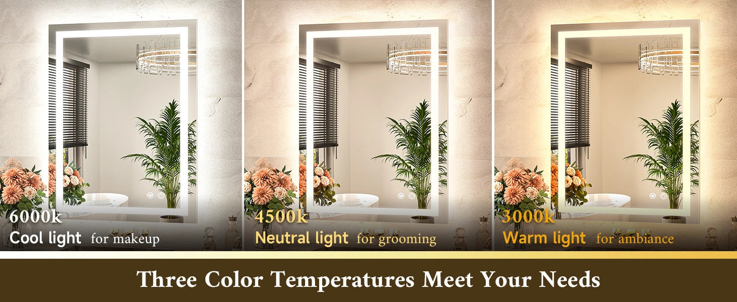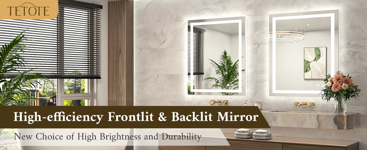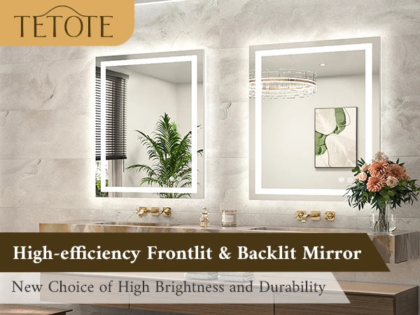 TETOTE Frontlit & Backlit LED Bathroom Mirror - 3 Color Dimmable Anti Fog Shatterproof