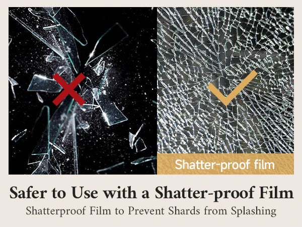 • Crystal-clear copper-free glass with shatter-proof film attached