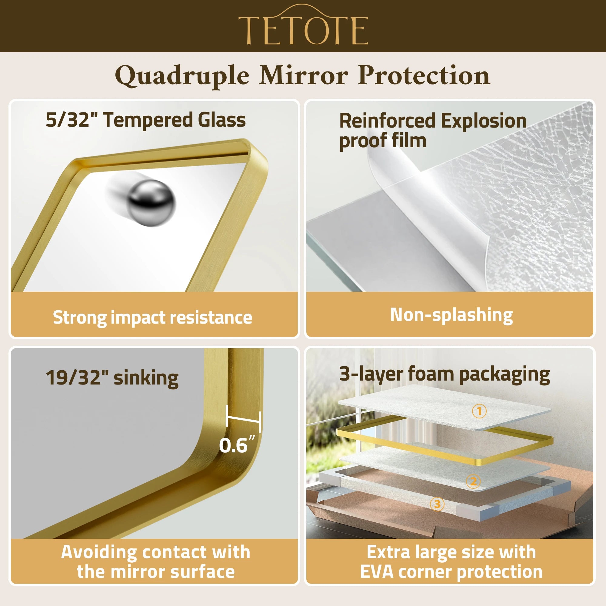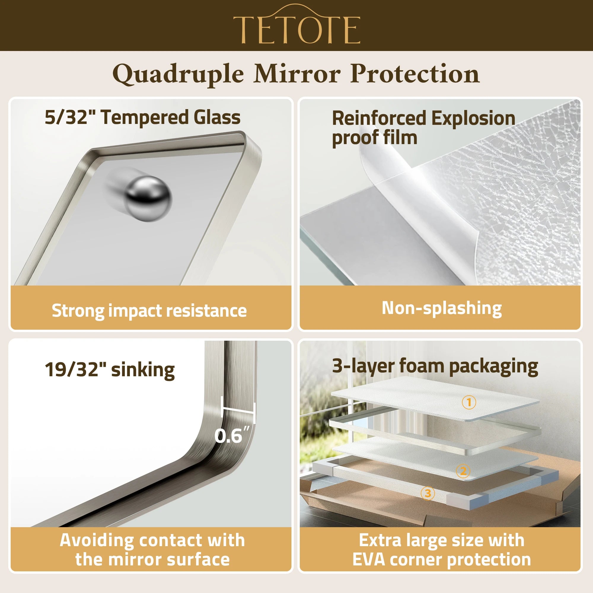 TETOTE Square Rounded Corners Metal FrameBathroom Mirror